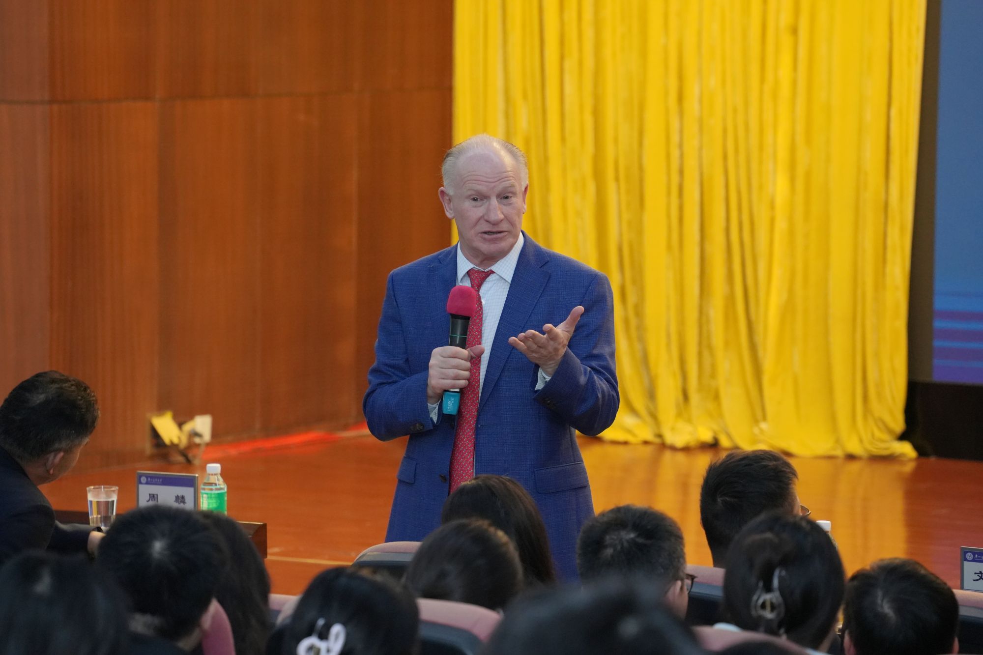 在现场互动交流环节,众多师生踊跃参与互动。交流尾声,他鼓励广医学子:“If you believe in what you are doing, you just never quit. You will win.”(如果你坚信自己所从事之事,永不言弃,你定能成功),现场师生随即报以热烈掌声。