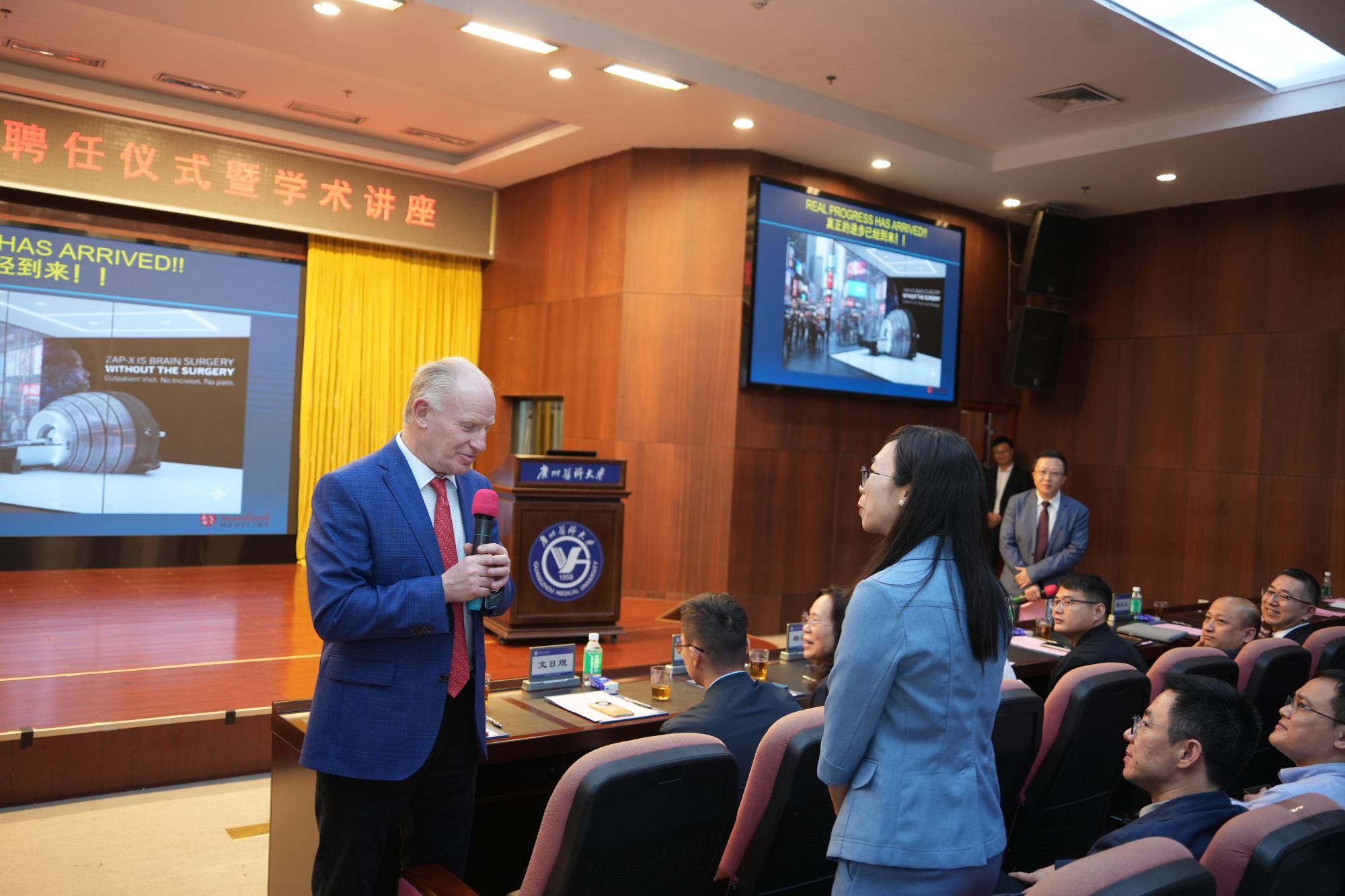 聘任仪式后,约翰·艾德勒教授开启了他在伟德国际英国的首场学术讲座。本次讲座以“精准放射治疗的重要性:过去、现在与将来”为主题,结合实际案例,他深入剖析了高精度放射治疗技术的最新进展、临床应用价值以及未来发展走向。