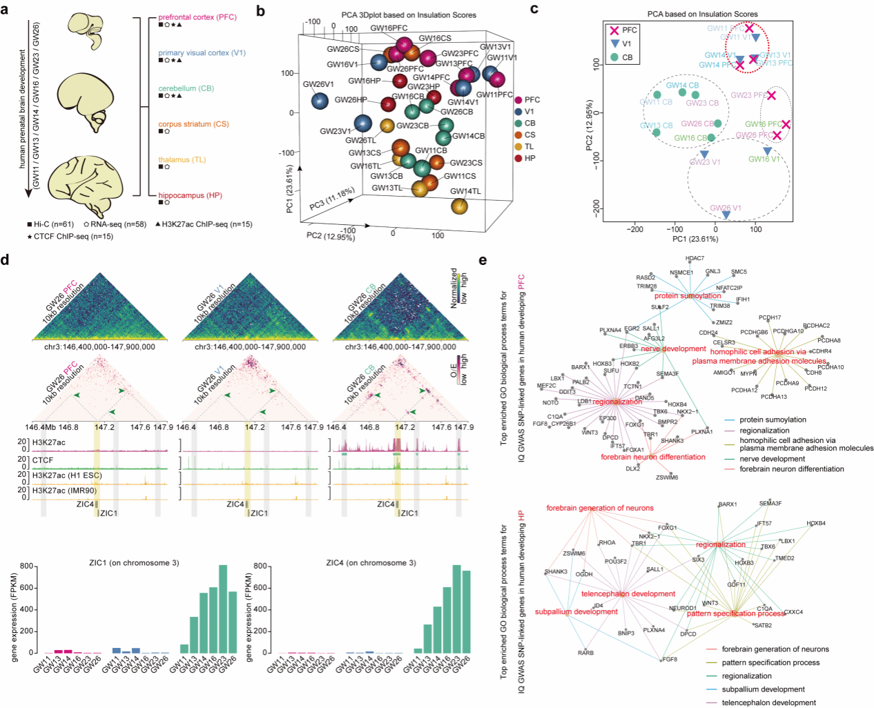 人类大脑是由解剖结构与功能各异的脑区共同构成的复杂精密器官,这些特化脑区协同执行认知功能、感官知觉、记忆存储与运动调控等重要生理活动。人类不同脑区的区域化发育,依赖于精细的基因调控网络与严格的时空协同机制。越来越多的研究表明,染色质三维构象在基因表达调控中发挥着关键作用,通过动态重构染色质高级结构,精准调控发育相关基因的时空特异性表达。然而,目前对人类妊娠发育中期不同脑区染色质三维构象的动态变化规律仍知之甚少,这一认知空白极大地制约了人们对脑区特异性发育机制的深入解析。