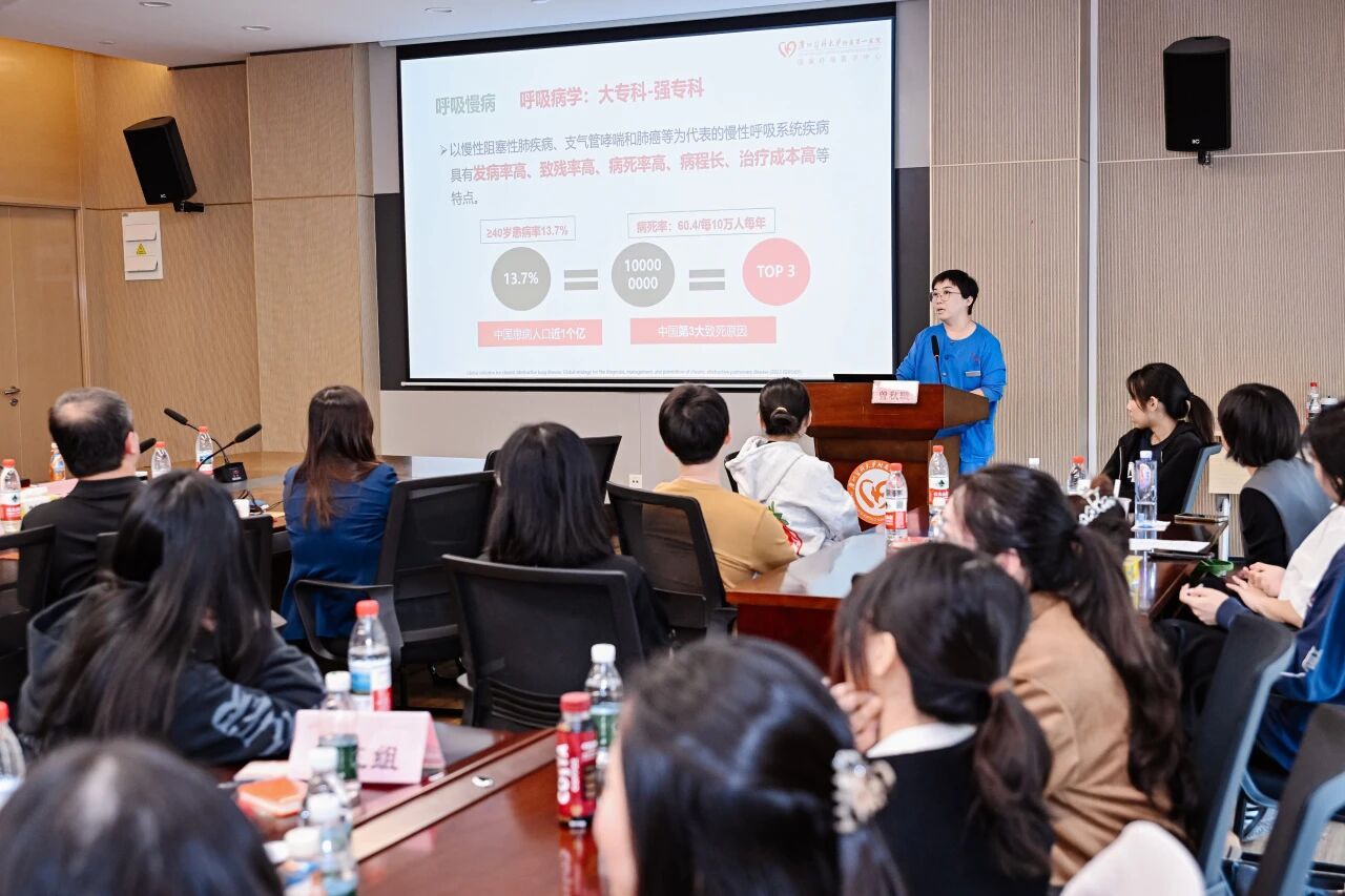 代表团一行参观了医院沙盘模型和荣誉墙、国家呼吸医学大数据中心及智能化门诊,并分组进入心内科、呼吸内科病房,与临床一线医护人员进行交流。呼吸内科曾秋璇科护士长介绍的“口琴呼吸康复法”等本土化护理创新,引起了来访师生的浓厚兴趣。