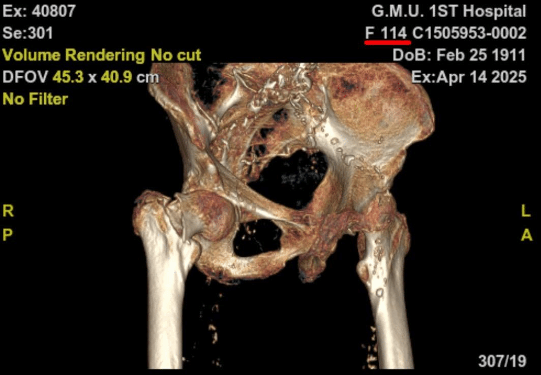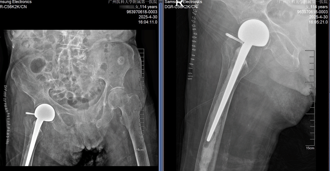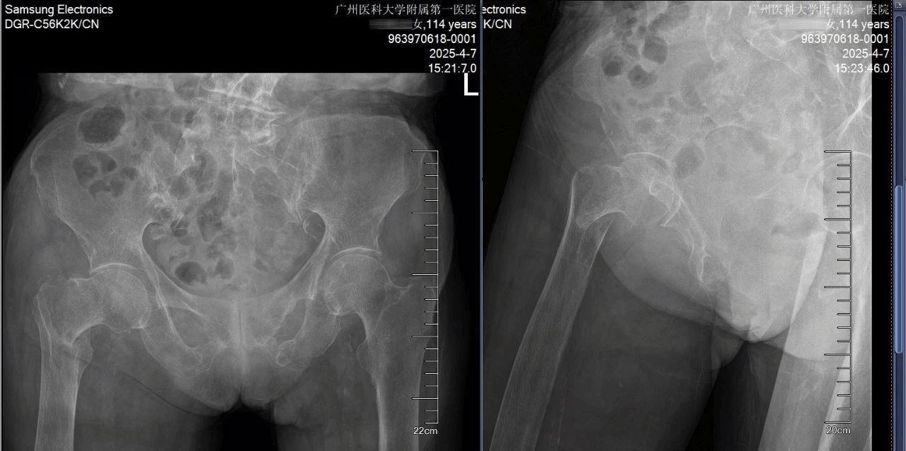 这位114岁的患者,在家中因不慎跌倒致右侧股骨转子间骨折,卧病于床。对于如此超高龄的患者而言,骨折不仅带来了身体上的痛苦,更对其生活质量和生命健康构成了严重威胁。
