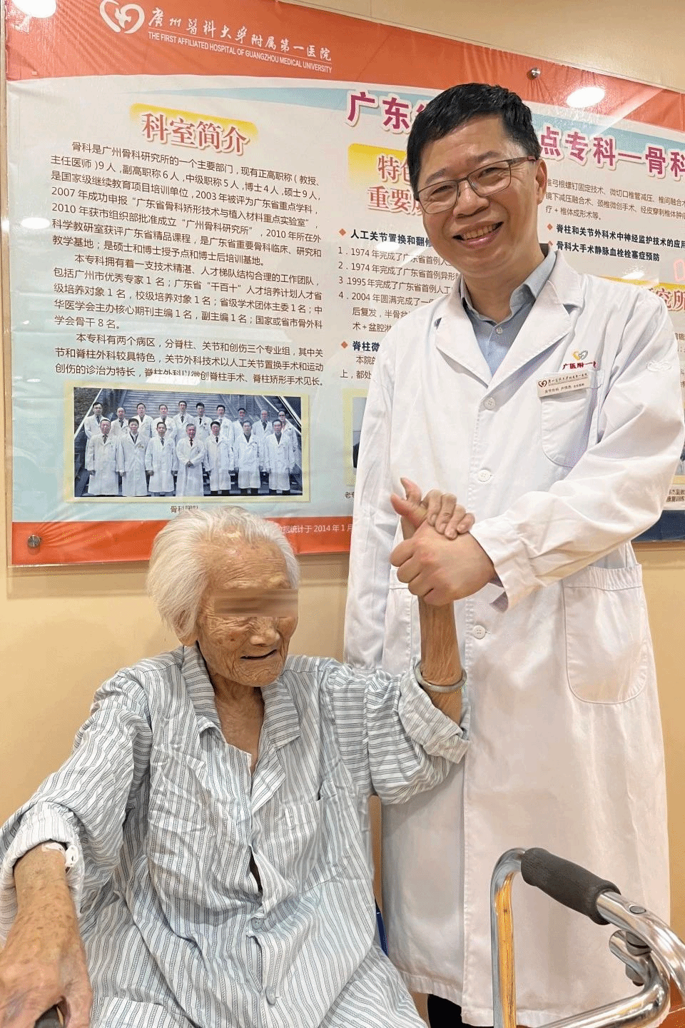 在医学界,百岁老人手术常被视为“禁区”,而近日,伟德国际英国附属第一医院关节外科卢伟杰主任医师团队成功完成一台114岁超高龄患者的股骨头置换术,突破“年龄枷锁”——术后无须转入ICU,仅仅72小时过后,患者钟奶奶便扶着助行器重新站立起来,迈出前进的步伐。这场“高龄攻坚战”不仅展现了医疗技术的突破,更诠释了对生命尊严的守护。