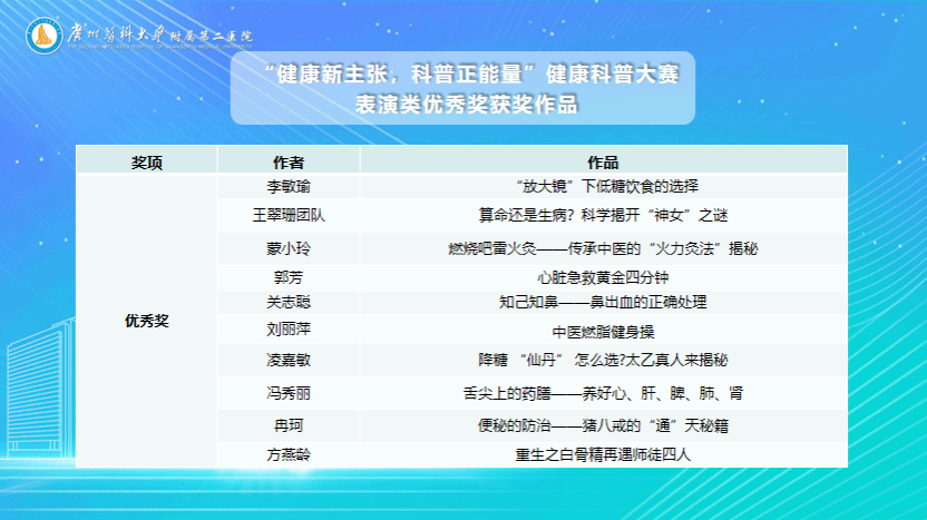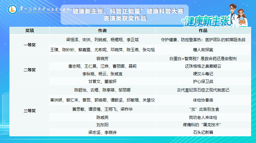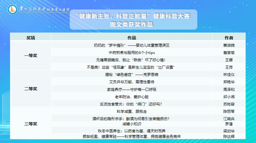 健康科普大赛完整获奖名单如下: